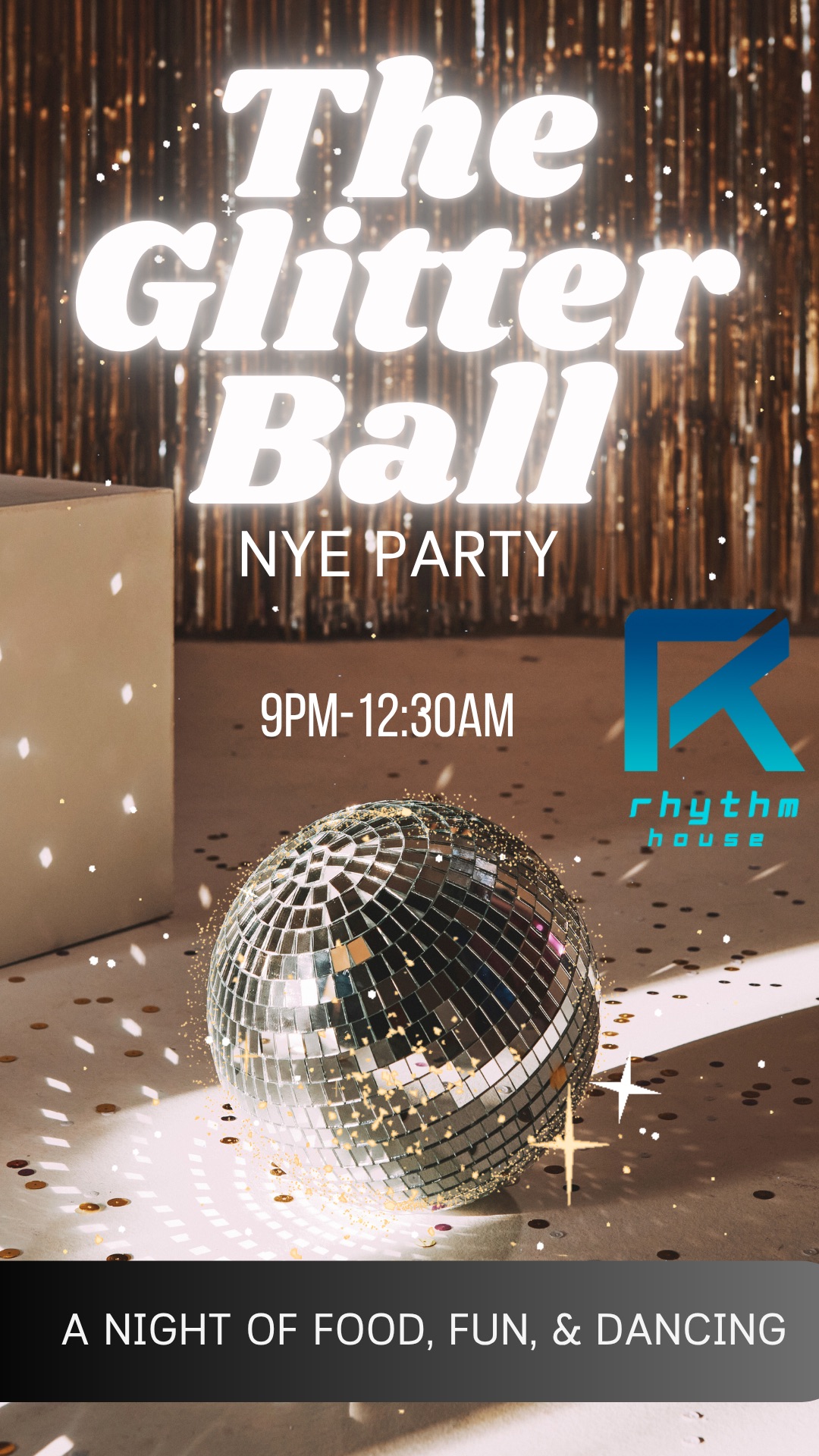 Ring in the New Year in true Rhythm House style — with sparkle, rhythm, and community! Join us for The Glitter Ball, a night of glitz, glam, food, and non-stop dancing.