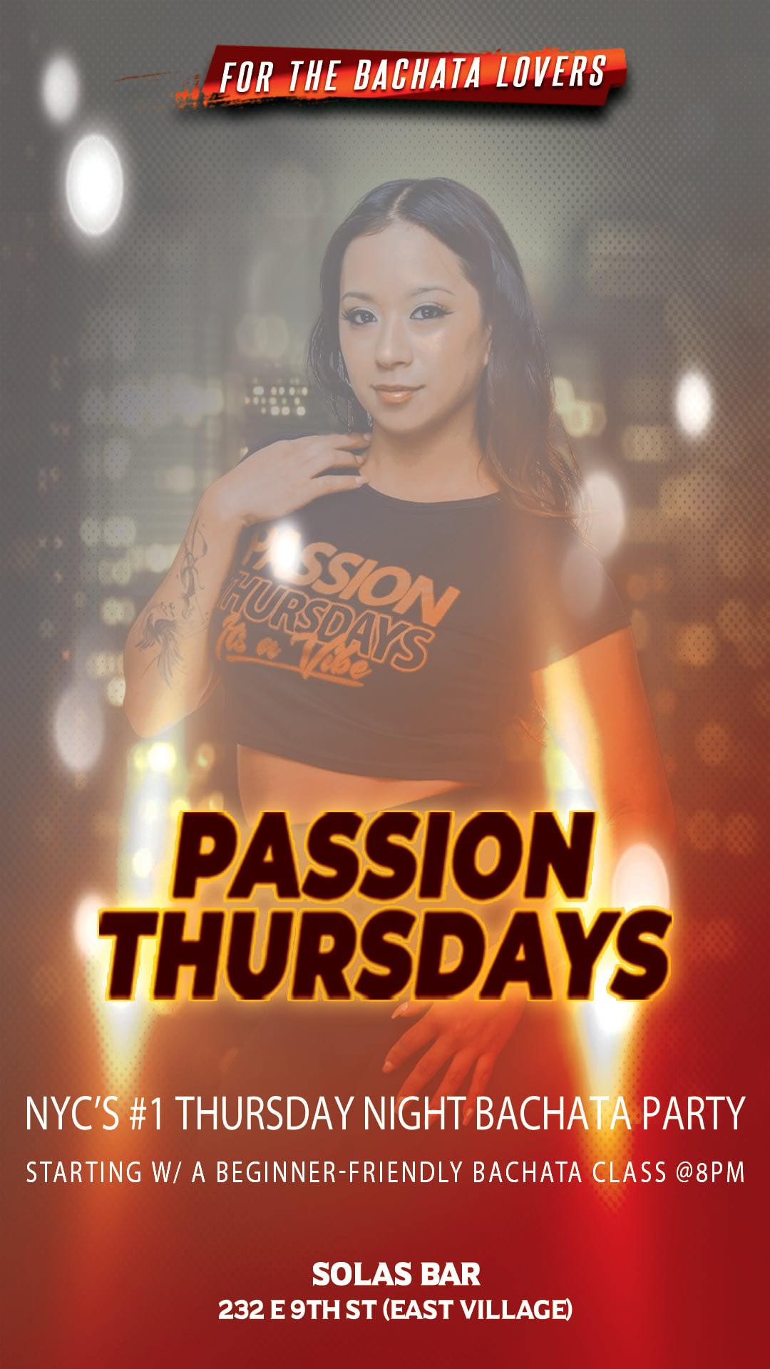 The Rose – New York 160 West 25th Street, Manhattan, NY, United StatesCome join us at The Rose every Tuesday for our Latin night of dancing! Time: 8pm – 12:30am There will be an open level dance class at 8:30pm (often a little footwork and then partner work in either salsa or bachata), and then a social party after. There is a bar available to purchase drinks