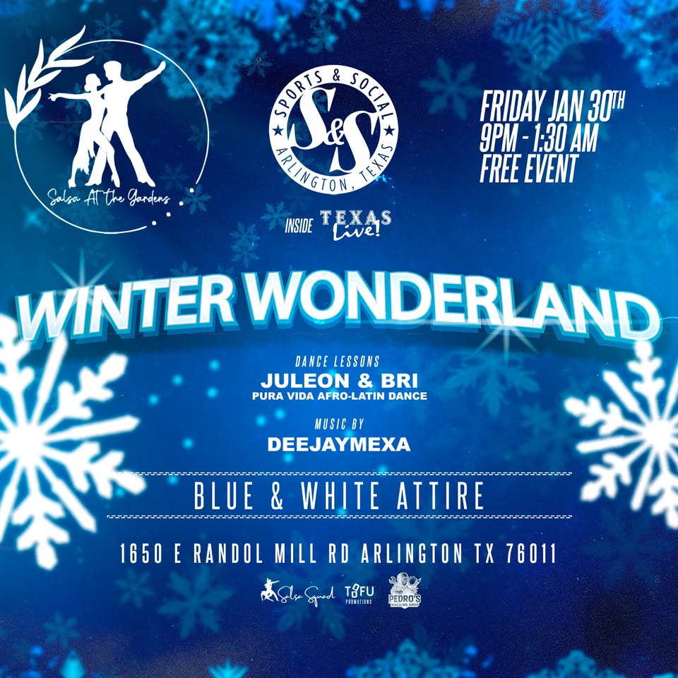 WINTER WONDERLAND SALSA PARTY Friday, January 30, 2026 Sports & Social at Texas Live 1650 E Randol Mill Rd Arlington, TX 76011 9:00 PM – 1:30 AM Free Admission & […]