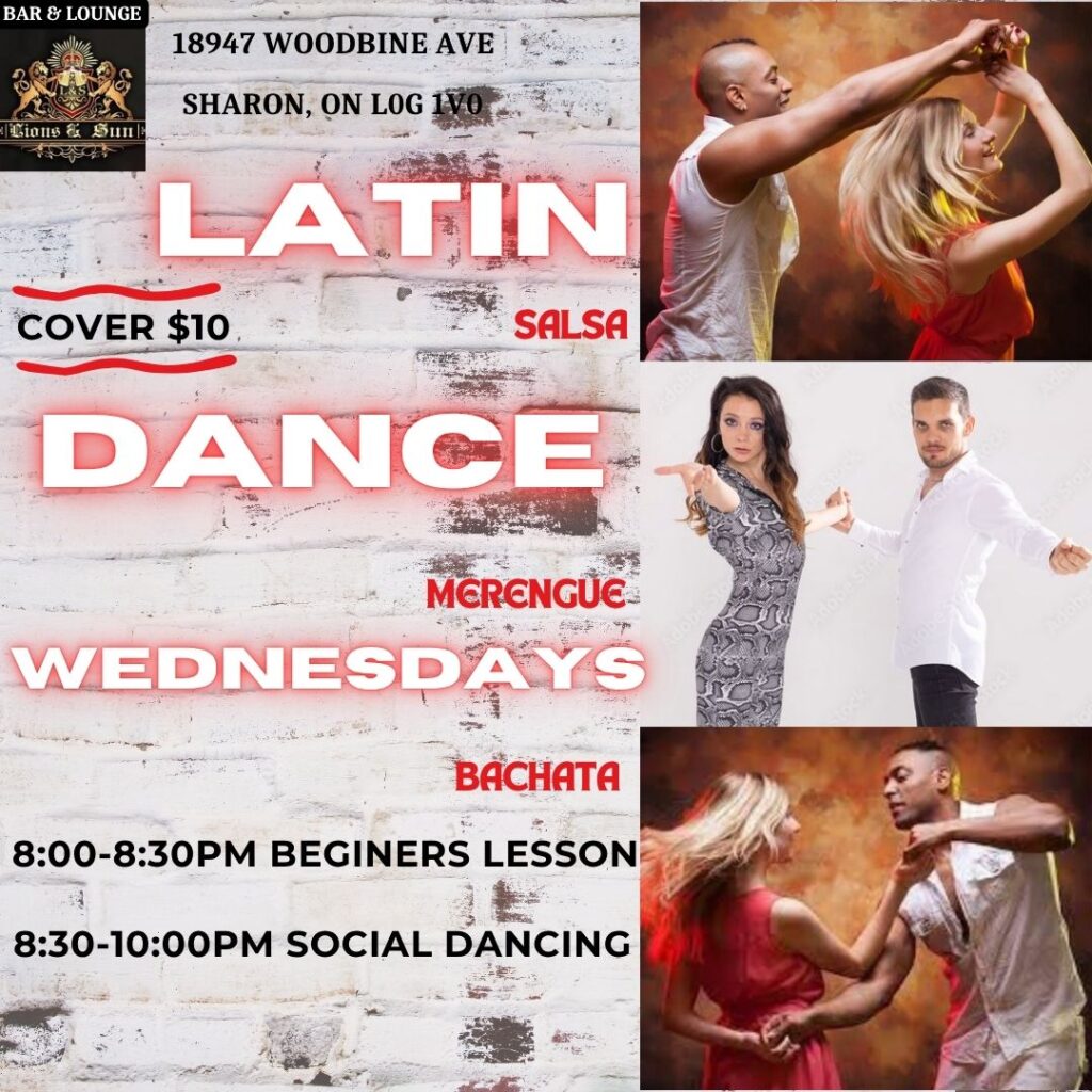 Location: Lions and Sun Bar and Lounge ( 18947 Woodbine Ave, Sharon, ON L0G 1V0 ) 8:00- 8:30 Dance lesson for beginners. 8:30-10:00 Social Dancing (Salsa, Bachata, Merengue & more). […]